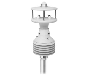 Two axes ultrasonic anemometer, multiparameter and high-range, for measuring: wind speed and wind direction, temperature, relative humidity, atmospheric pressure, and solar radiation. The anemometer is also equipped with an electronic compass with tilt angles and integrated heating.